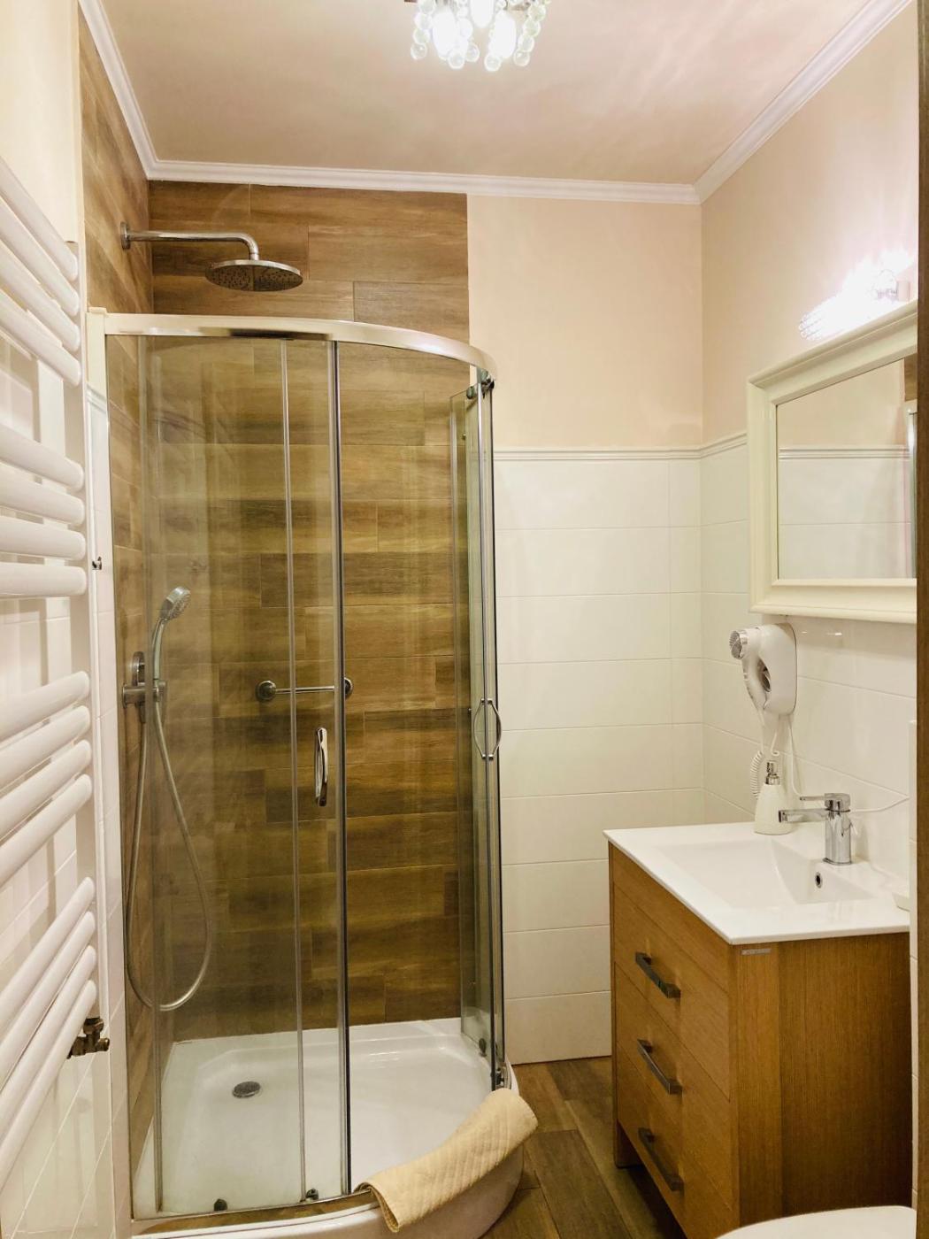 Mały pokój Dwuosobowy. The spacious double room provides a wardrobe, an electric kettle, as well as a private bathroom featuring a walk-in shower and a hairdryer. The unit offers 1 bed. Pokój Dwuosobowy - 2 osobowy. Powierzchnia pokoju ok.: 35 mkw.