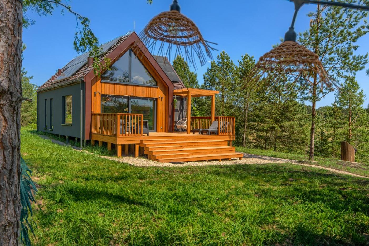 Dom z 3 sypialniami. This holiday home provides a sauna. Featuring a private entrance, this air-conditioned holiday home comprises 1 living room, 3 separate bedrooms and 2 bathrooms with a shower. Guests will find a stovetop, a refrigerator, a dishwasher and kitchenware in the kitchen. The holiday home also provides guests with a barbecue. The unit features a washing machine, garden views, a terrace and winechampagne is featured for guests. The unit offers 4 beds. Dom wakacyjny - 6 osobowy. Powierzchnia pokoju ok.: 75 mkw.
