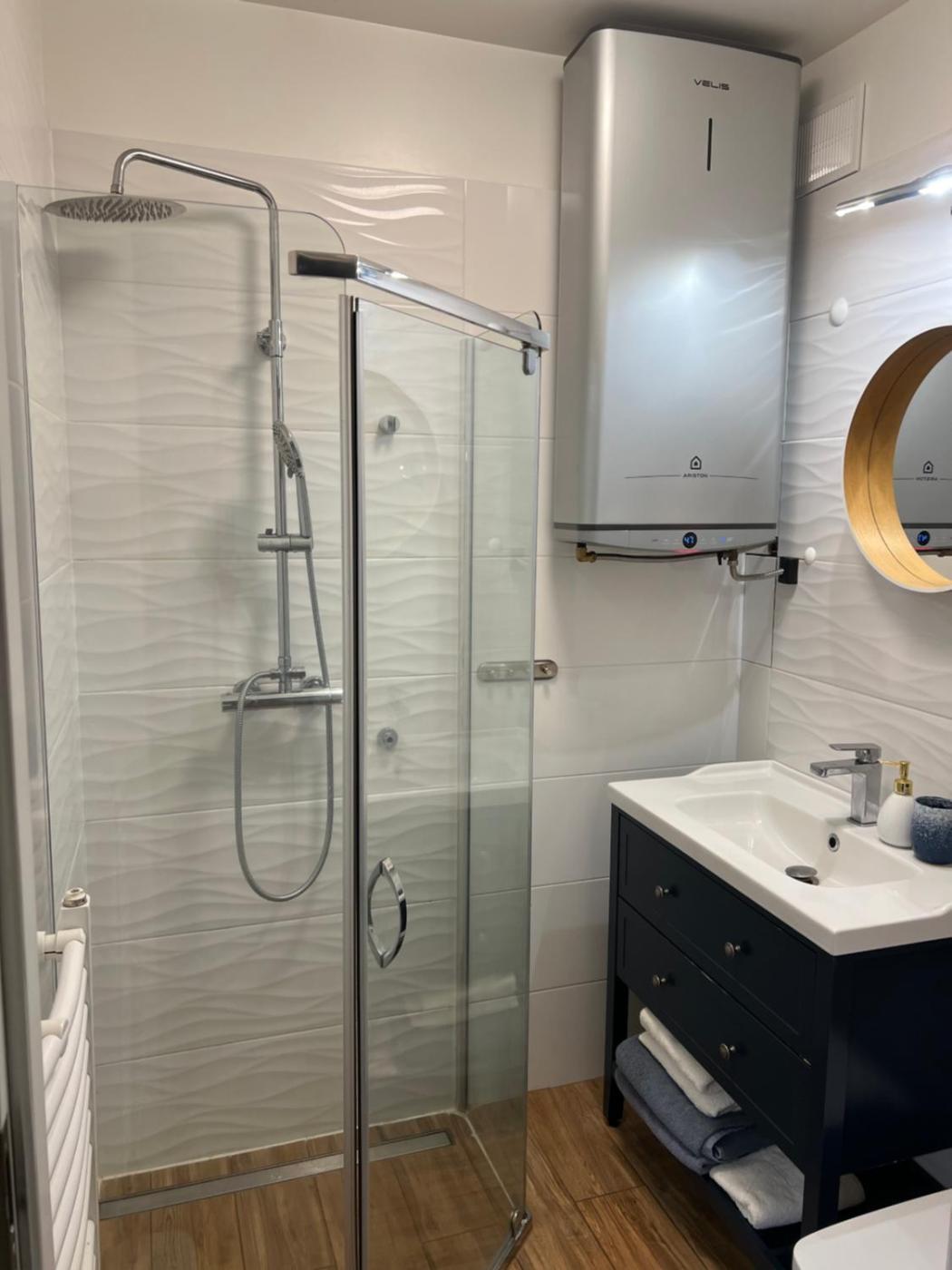 Apartament. Boasting a private entrance, this apartment comes with a kitchen, 1 bedroom and 1 bathroom with a walk-in shower and a hairdryer. In the kitchen, guests will find a stovetop, a refrigerator, a dishwasher and kitchenware. This apartment has soundproof walls, flat-screen TV with streaming services, garden views, as well as chocolate for guests. The unit has 1 bed. Apartament - 2 osobowy. Powierzchnia pokoju ok.: 25 mkw.